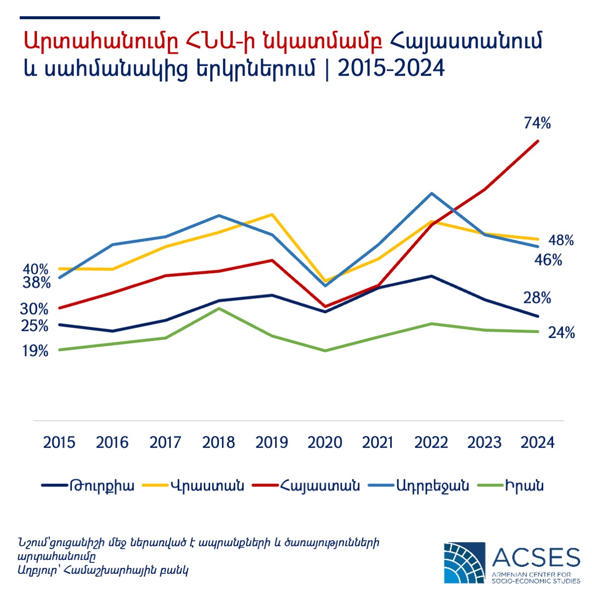 2024 թվականին տարածաշրջանում ՀՆԱ-ի նկատմամբ ապրանքների և ծառայությունների արտահանման ամենաբարձր